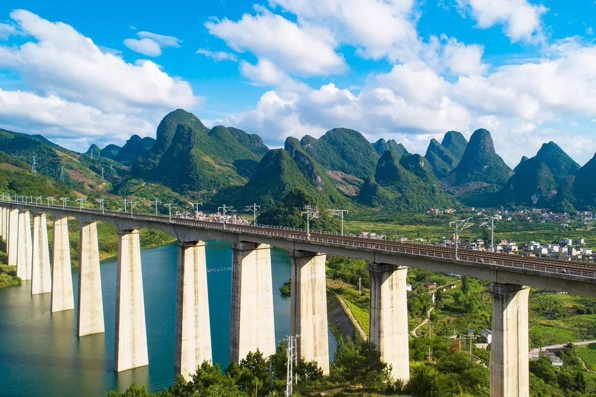 Na het ontbijt wordt u opgehaald bij uw hotel en naar het treinstation gebracht, waar u op de hogesnelheidstrein naar Yangshuo stapt. Deze treinreis is werkelijk spectaculair: u reist langs landschappen vol met weelderig groene bergen, watervallen en kleine dorpjes – plekken die u zou missen als u zou vliegen. De afstand van ongeveer 1.200 km legt u in slechts 7 uur af. Bij aankomst in het schilderachtige Yangshuo staan een gids en een chauffeur klaar om u te verwelkomen. U wordt samen naar uw hotel gebracht, dat ongeveer een half uur rijden verderop ligt.