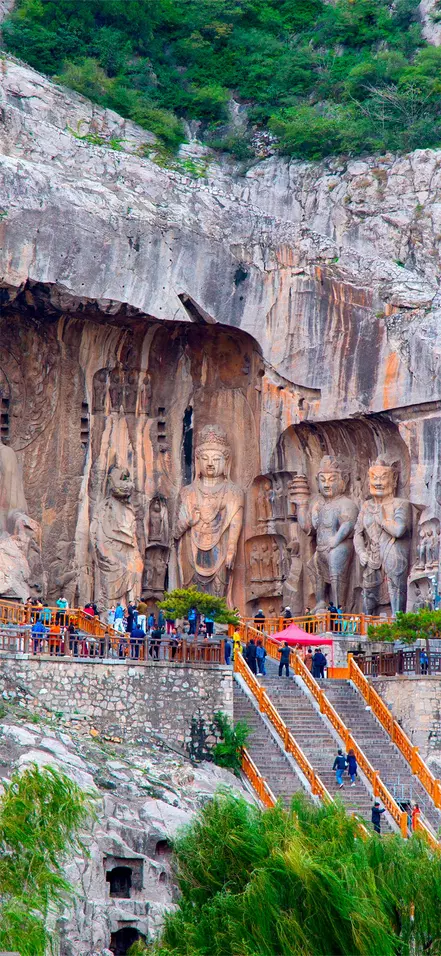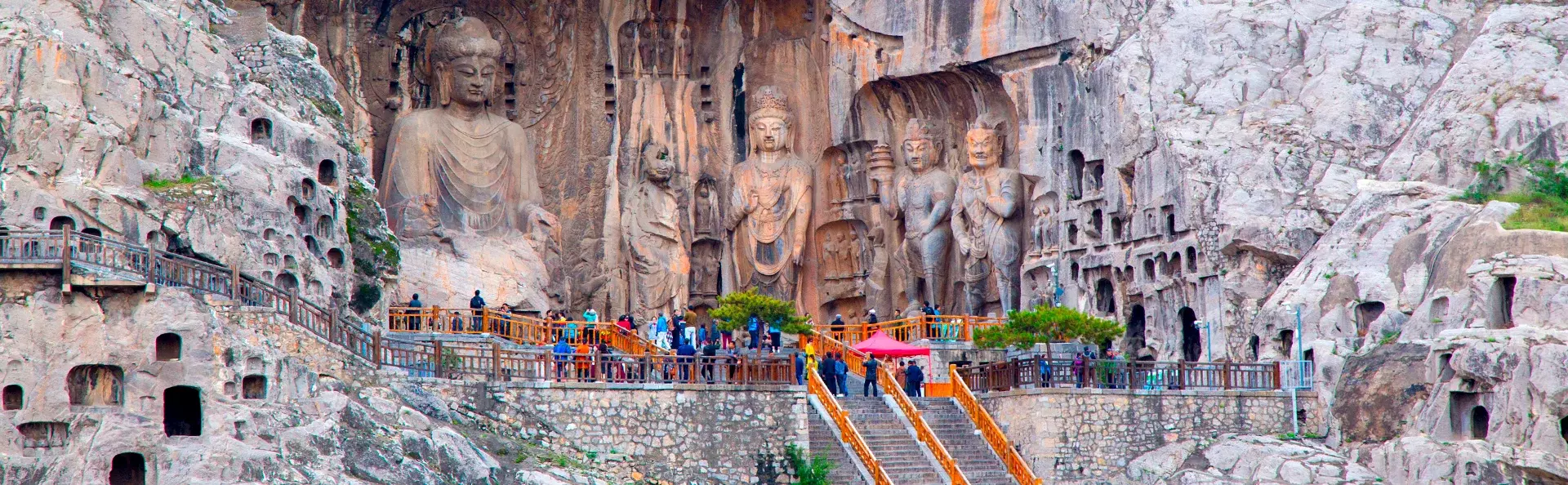 Het was de noordelijke Wei-dynastie die begon met de grottenkunst, die werd voortgezet tot het jaar 900, toen de Tang-dynastie aan de macht was. Gedurende deze lange periode werden wel 100.000 Boeddhabeelden, bodhisattva’s, lotusbloemen en andere beelden uitgehouwen in de ongeveer 2.345 grotten langs de rivier. Niet voor niets staan deze tegenwoordig op de UNESCO-werelderfgoedlijst. Meer dan 1.000 jaar heeft de tjid ingewerkt op de beelden, maar vele ervan zijn goed bewaard gebleven.