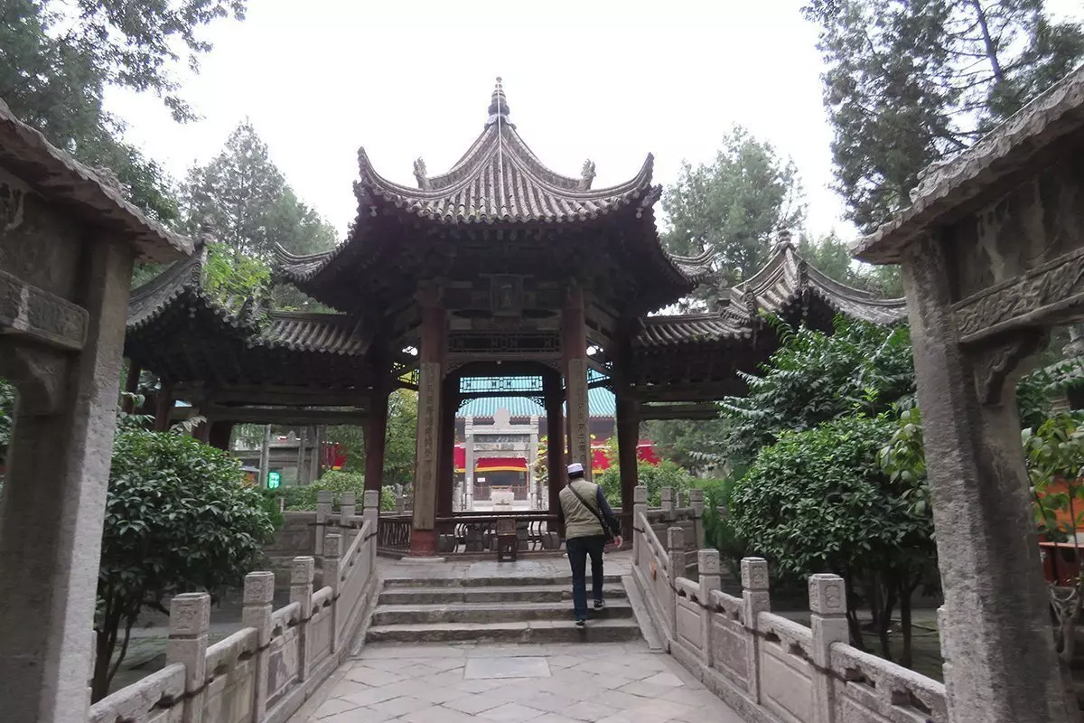 Het eerste bezoek van de wandeling is de Grote Moskee, de oudste en grootste moskee van China. Deze werd gebouwd in 742 tijdens de Tang-dynastie, toen er veel Arabische handelsreizigers in de stad waren. De moskee is later diverse keren gerestaureerd en verbouwd. Het is een moskee, maar de bouwstijl is erg Chinees met zadeldaken, tuinen en paviljoens, maar weer met Arabische inscripties.