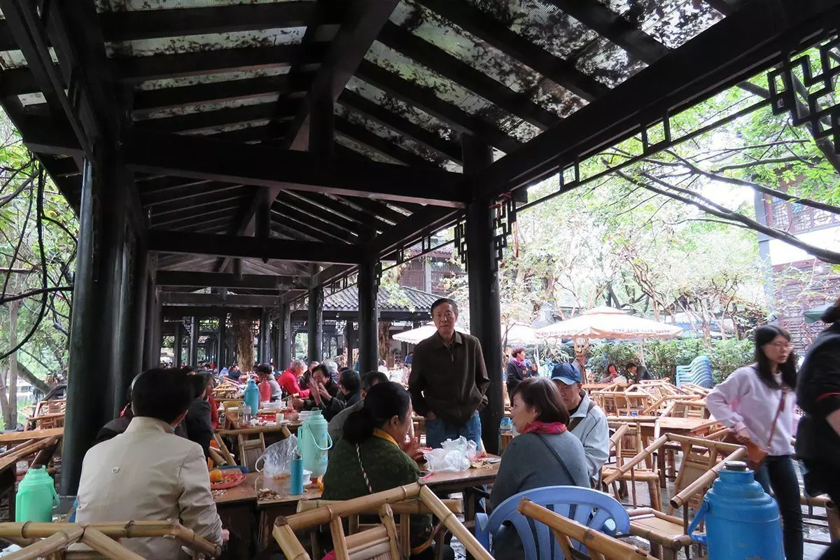 Chengdu is een charmante en levendige stad met gezellige theehuizen. Nergens in China zijn zoveel theehuizen in tempels en parken als in Chengdu, en mensen zitten hier gezellig te praten met een kopje dampende thee.