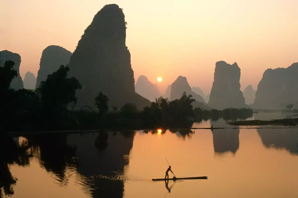 Hoe zuidelijker en westelijker u komt, hoe frisser de lucht wordt. Dit is vooral merkbaar in Yangshuo, waar u onder de indruk zult zijn van het betoverende en poëtische landschap. Hier staan hoge, grillige kalksteenbergen die worden weerspiegeld in de kalm stromende rivieren, de Li en de Yalong. Het landschap is zo uniek dat het vereeuwigd is op het bankbiljet van 20 yuan.