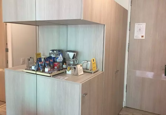 Het hotel is modern ingericht met 64 grote, lichte kamers. Alle kamers hebben een tv, kluis, minibar en gratis wifi.