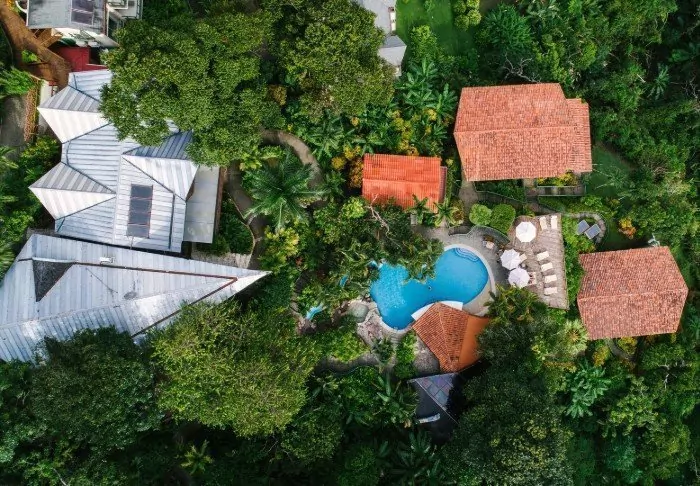 Het hotel heeft slechts 25 kamers en is gebouwd rondom een kleine, weelderige tuin met een zwembad en een spabad in het midden. Hier kun je ontspannen in een ligstoel met een goed boek, of genieten van een koel drankje of een Costa Ricaanse koffie uit de hotelbar.