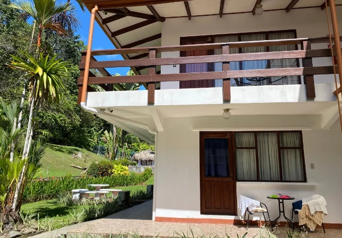 De lodge bestaat uit houten hutten in een rustieke stijl die bij de plaatselijke natuur past. Alle hutten hebben een eigen badkamer en een tv. Ze hebben allemaal hun eigen balkon, wat de ideale plek is om te genieten van een rustig moment met een heerlijk kopje Costa Ricaanse koffie en een boek met uitzicht op de wilde natuur van de jungle.
