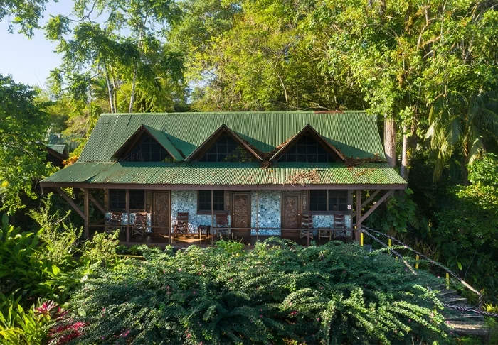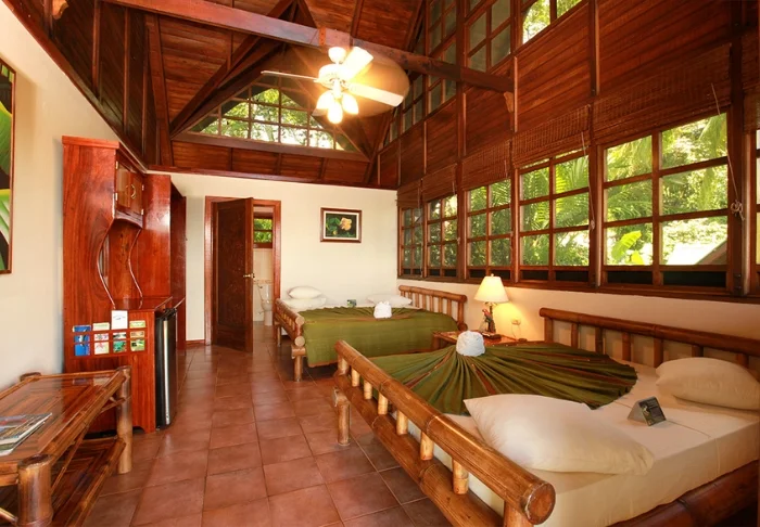 De lodge streeft ernaar om een ervaring te creëren die zo dicht mogelijk bij de natuur ligt en daarom is er geen tv, radio of airconditioning in de kamers. De 56 rustieke kamers zijn gebouwd in traditionele Caribische stijl met donker hout dat op een natuurlijke manier opgaat in de groene omgeving. De kamers hebben een eigen badkamer met een haardroger en toiletartikelen. Er is een plafondventilator en er zijn horren voor de ramen, voor een natuurlijk briesje. Je kunt in slaap vallen terwijl je luistert naar de geluiden van het regenwoud.