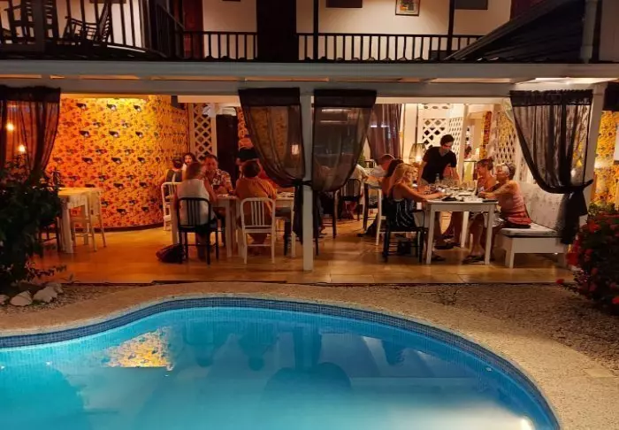 Het hotel ligt naast het restaurant MaMa Gui, waar je ontbijt (inbegrepen) wordt geserveerd. Het restaurant is ook geopend voor lunch en diner en serveert een spannende mix van Italiaans en Costa Ricaans eten.