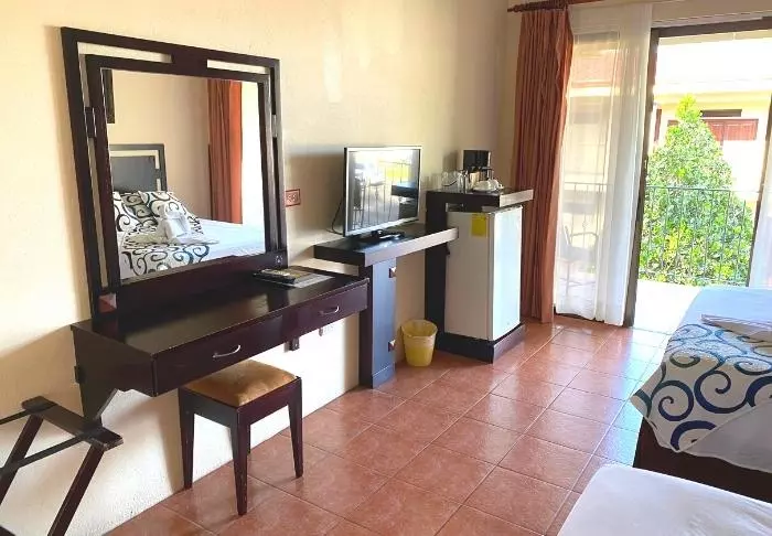 De kamers zijn voorzien van een tv, koffiezetapparaat, airconditioning, wifi, een koelkast en een kluis. Ze hebben ook een aparte badkamer met een haardroger en een terras of balkon met uitzicht op de tuin.