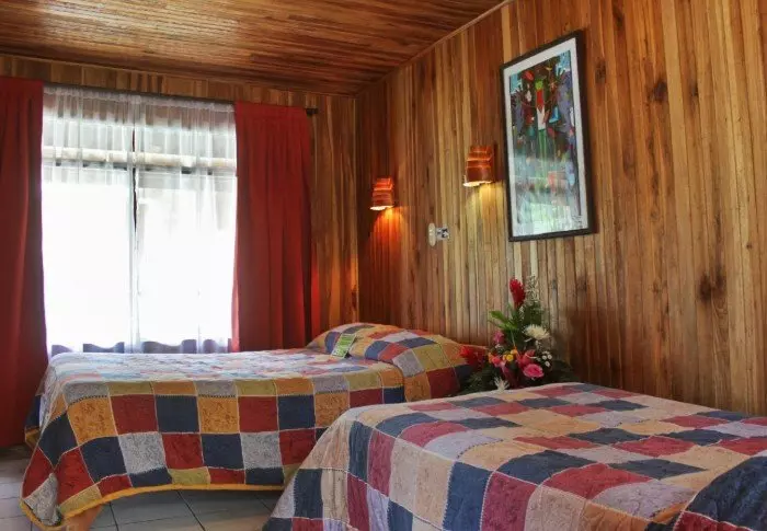 Alle 60 kamers van de lodge zijn geïnspireerd op de originele stijl van de eerste berghutten in Monteverde, en zijn ingericht met houten meubels en warme kleuren. Ze hebben kabel-tv, een telefoon, een kluis, een koffiezetapparaat en eigen toilet en douche. Buiten de kamers bevindt zich een gedeelde veranda, waar je kunt zitten en ontspannen in een van de stoelen.