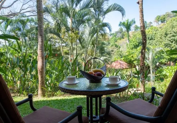 De ‘tuinkamers’ kijken uit op de weelderige tuin en bevinden zich op de begane grond met toegang tot een privéterras met een tafel en stoelen. De “Premium”-kamers hebben uitzicht op zee en jungle en een eigen balkon met een tafel en stoelen, waarop je kunt genieten van de adembenemende zonsondergang.