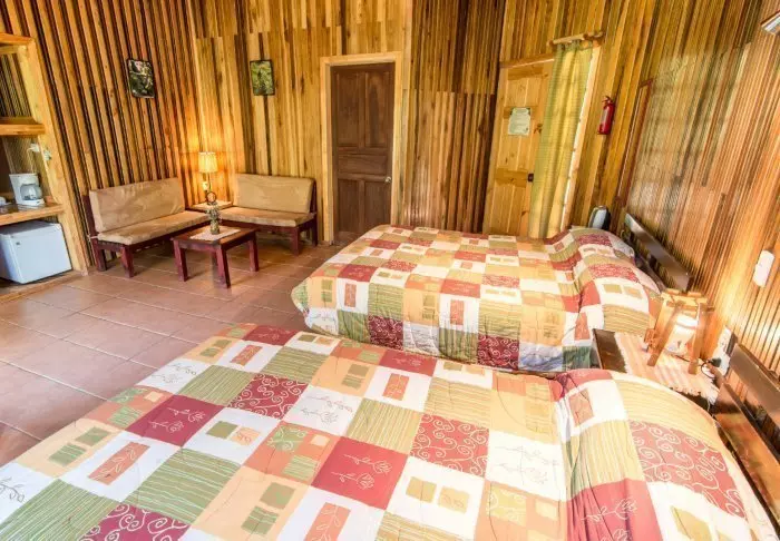 De 10 bungalows van de lodge zijn gemaakt van hout en versierd in warme kleuren met aantrekkelijke houten panelen op de muren. Met twee tweepersoonsbedden bieden ze plaats aan maximaal 4 personen. Ze bieden ook wifi, kabel-tv, een koelkast, een eigen badkamer met toiletartikelen en een haardroger, en een klein zitgedeelte waar je kunt zitten en ontspannen. Elke bungalow heeft ook een veranda waarop je kunt genieten van de weelderige omgeving.