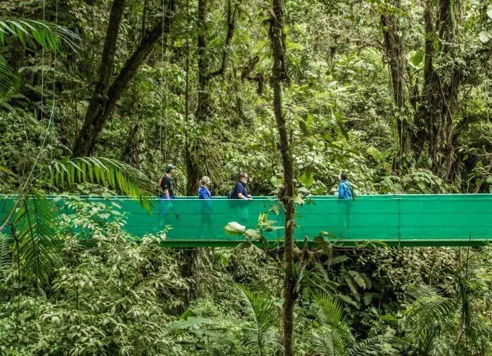 Er wacht je een prachtige wandeling van ongeveer 2,5 kilometer in de boomtoppen van het sprookjesachtige nevelbos. Terwijl je over de hangbruggen tussen de bomen loopt, voel je de zeer speciale en mysterieuze sfeer die de nevel in dit betoverende landschap creëert. Je wordt omringd door orchideeën, varens, mossen, enorme bomen en talloze plantensoorten die op de boomstammen groeien. In de boomtoppen van het magische bos kwetteren kleurrijke vogels, zoals de goudbrauworganist, de koperkopsmaragdkolibrie, de prachtige quetzal en meer dan 400 andere vogelsoorten die het bos tot een paradijs voor vogelspotters maken.