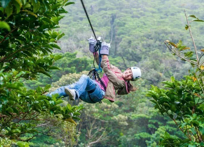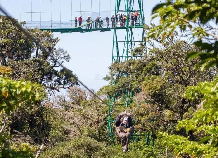 Je zoeft over de ravijnen en weelderige vegetatie van het nevelbos en misschien zelfs wel door de wolken aan kabels die stevig zijn bevestigd aan de platforms in de boomtoppen. Je bereikt snelheden tot 70 km/u langs de acht verschillende kabels, waarvan de langste 750 meter lang is en de hoogste 100 meter boven de grond loopt.