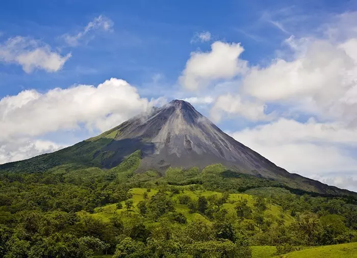 Van het regenwoud ga je naar de beroemdste vulkaan van Costa Rica, de Arenal-vulkaan, die op de achtergrond prachtig boven het dorp La Fortuna uit torent.
