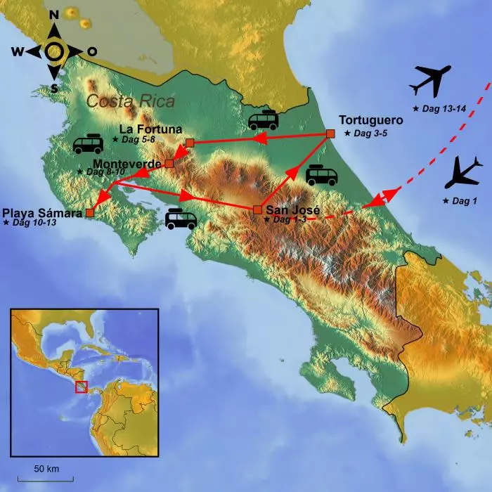 Maak van heel dichtbij kennis met het prachtige landschap en de wilde dieren van Costa Rica in het nationale park Tortuguero, bij de Arenal-vulkaan en in het nevelbos van Monteverde, en eindig de rondreis op het prachtige strand van Playa Sámara.