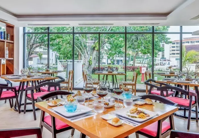 Het restaurant van het hotel serveert een verscheidenheid aan Creoolse specialiteiten en internationale gerechten. Het biedt ook een prachtig uitzicht over de stad en de bergen.