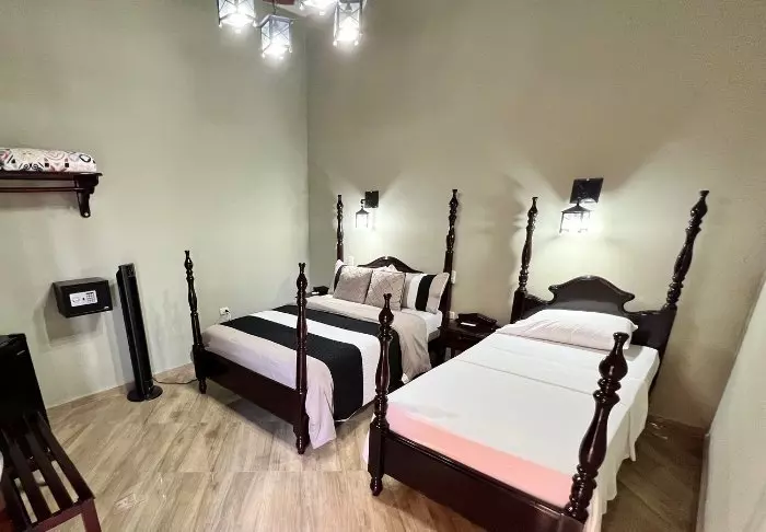 Het hotel heeft tien ruime kamers, ingericht in klassieke koloniale stijl met houten meubels en smeedijzeren lampen. Ze hebben allemaal airconditioning, wifi, tv, een radio, een telefoon, een kluis, een minibar en een haardroger.
