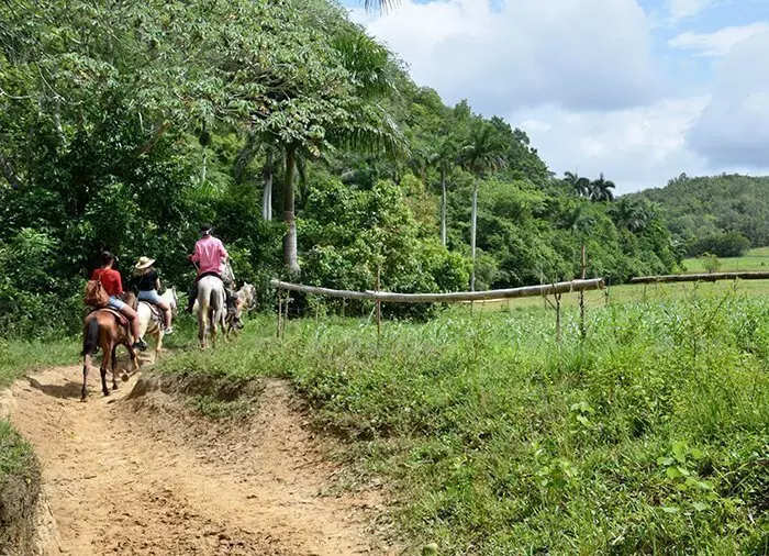 Ga met ons mee op een rondleiding van 3 uur door de prachtige natuur van de Viñales-vallei te paard. Onderweg kun je het prachtige landschap bewonderen met zijn unieke kalkstenen rotsformaties en zee van vruchtbare velden, waaronder tabaksvelden en koffie-, banaan-, ananas- en mangoplantages.