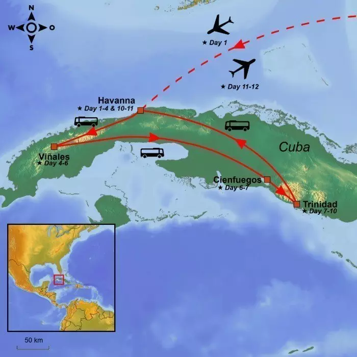De rondreis gaat van hieruit naar Trinidad via het charmante Cienfuegos, met zijn adembenemend indrukwekkende architectuur.