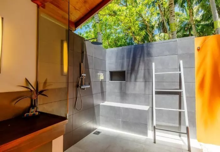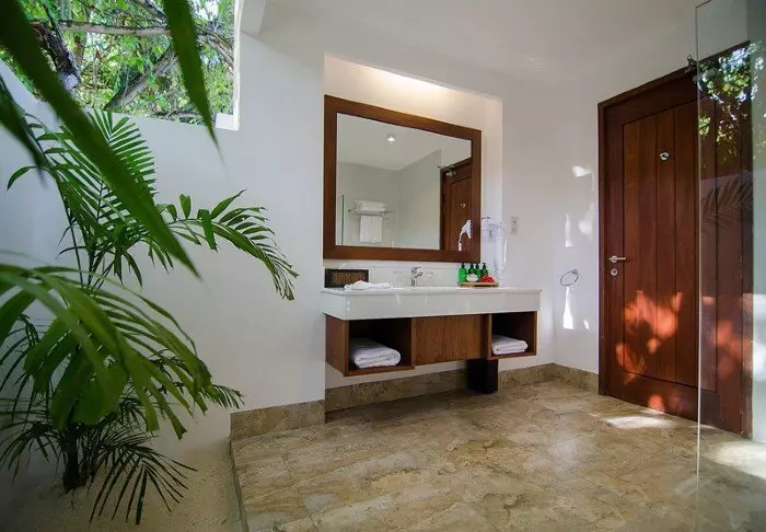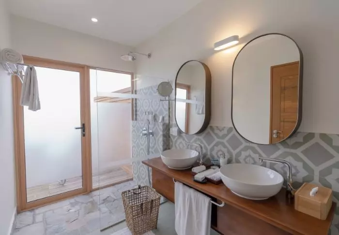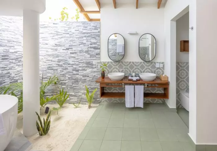 Er is ook een badkamer met ‘open-air’ badkamer faciliteiten. Om het helemaal perfect te maken, heeft de villa directe toegang tot het hagelwitte zandstrand.