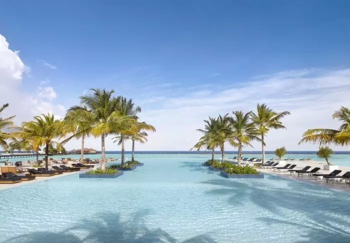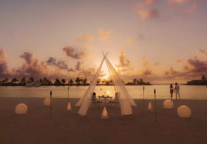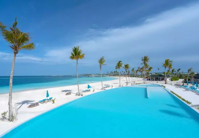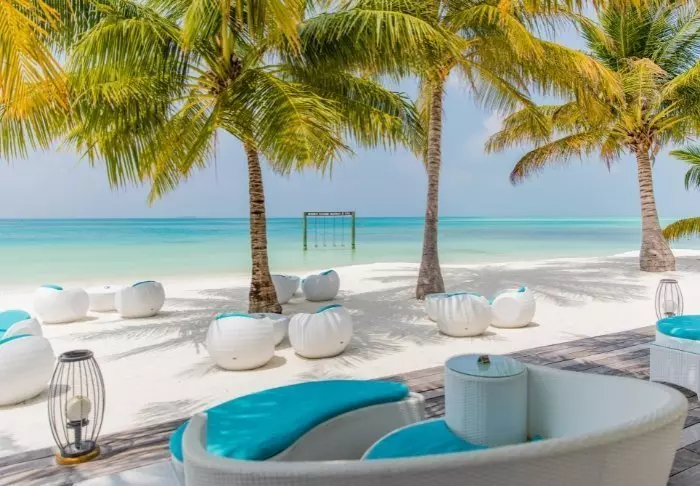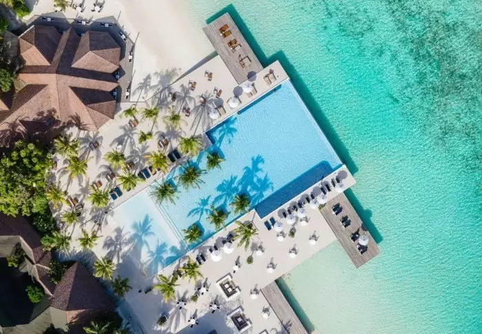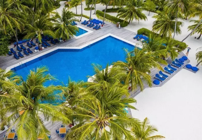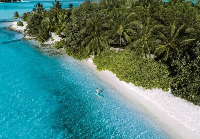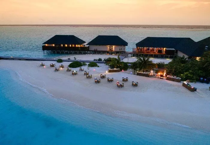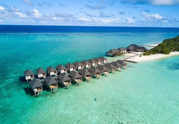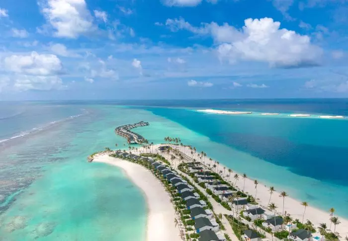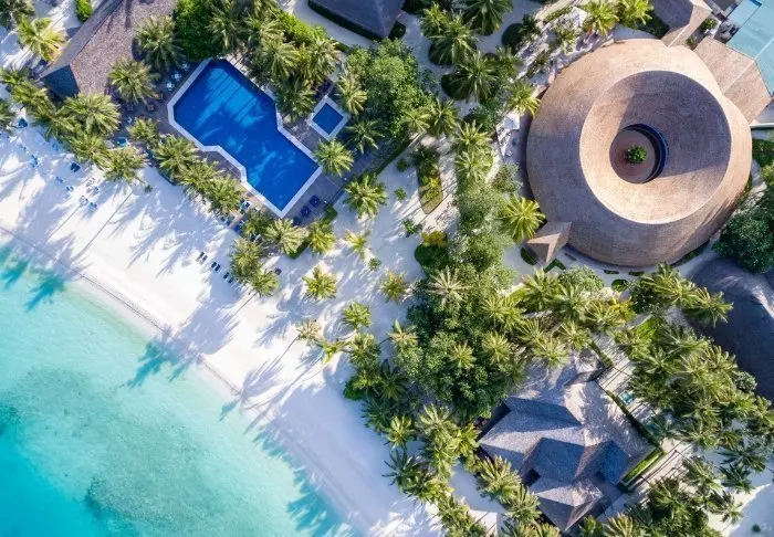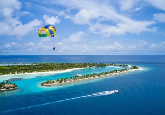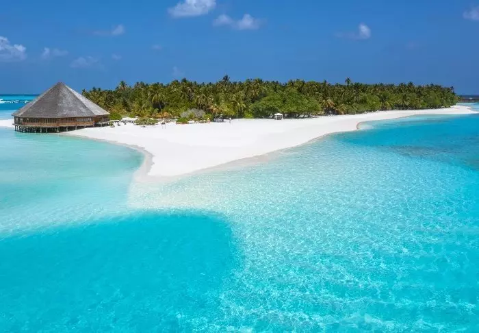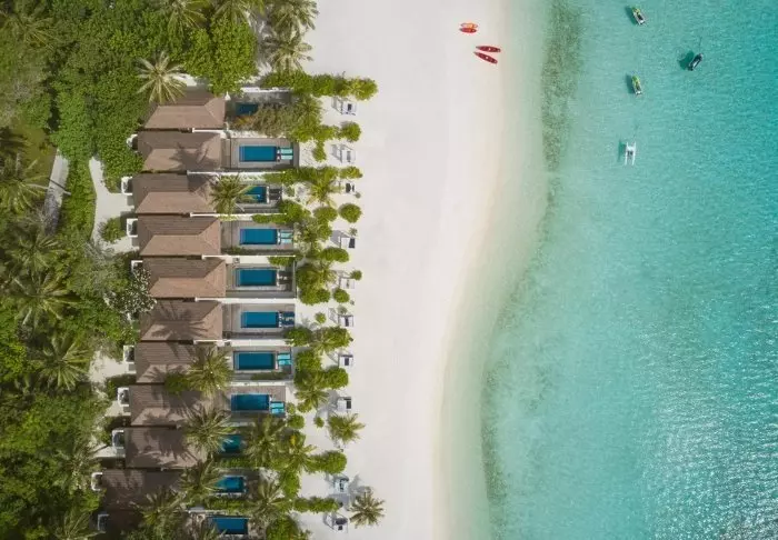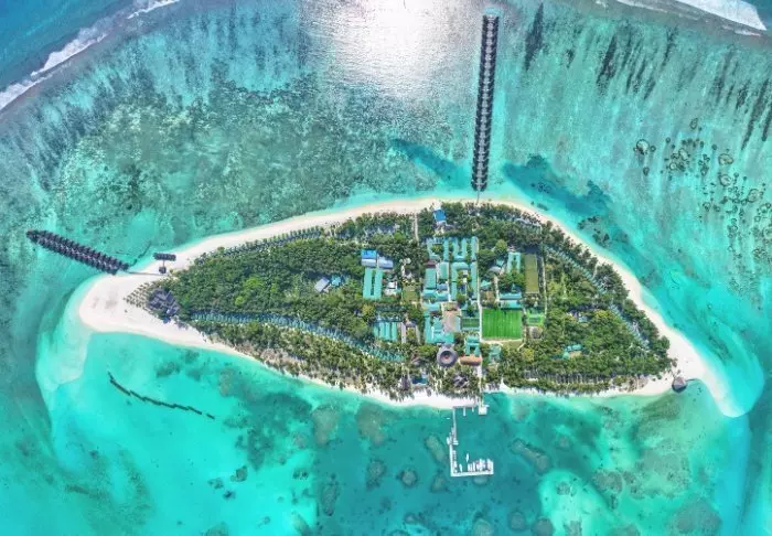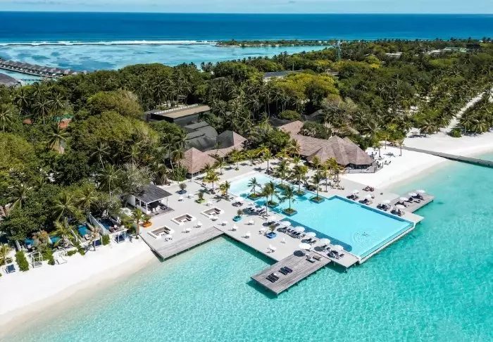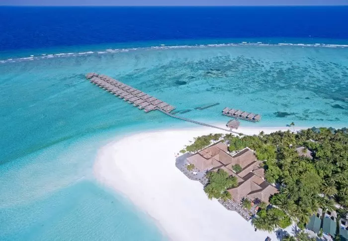 Dit luxe eiland heeft de vorm van een vlinder en ligt op ongeveer 40 minuten met de speedboot van Malé.