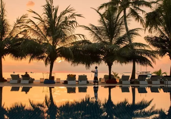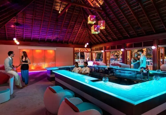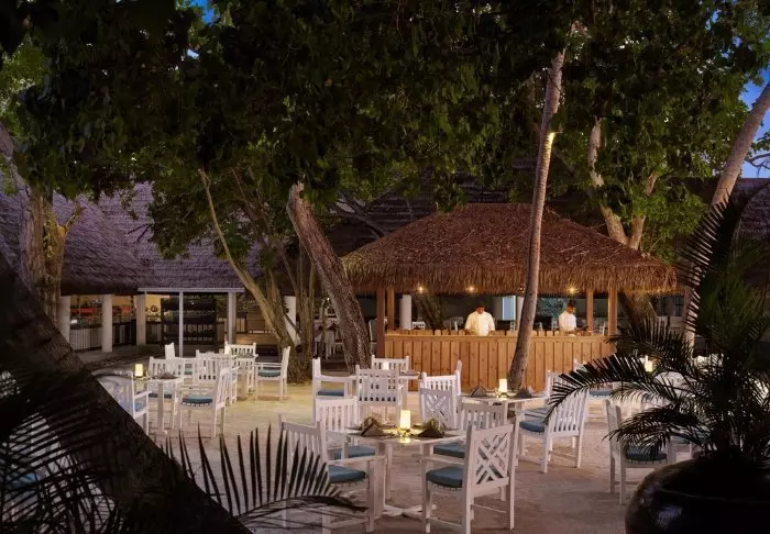 ‘s Avonds, als de zon rustig ondergaat, kun je genieten van een drankje in een van de loungebars op het eiland, die een ontspannen sfeer bieden met uitzicht op het strand.