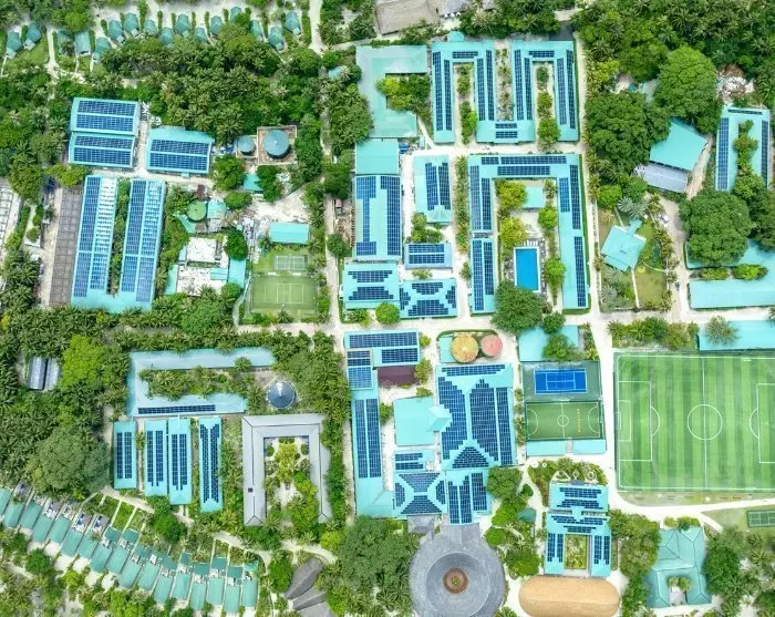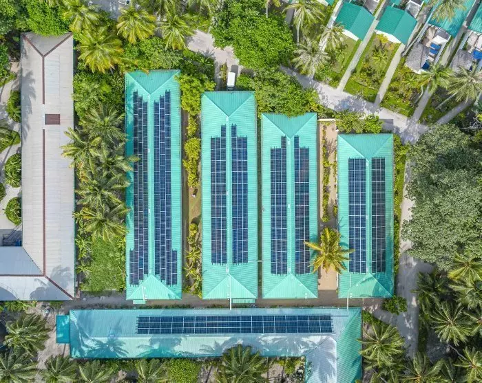 Meeru investeert ook in energie-efficiënte oplossingen om zijn CO₂-voetafdruk te minimaliseren. LED-verlichting en moderne airconditioningsystemen maken gebruik van restwarmte om water te verwarmen, en een geleidelijke overstap naar ‘invertertechnologie’ vermindert het elektriciteitsverbruik aanzienlijk. Bovendien heeft het resort zonnepanelen geïntroduceerd om de afhankelijkheid van fossiele brandstoffen te verminderen.