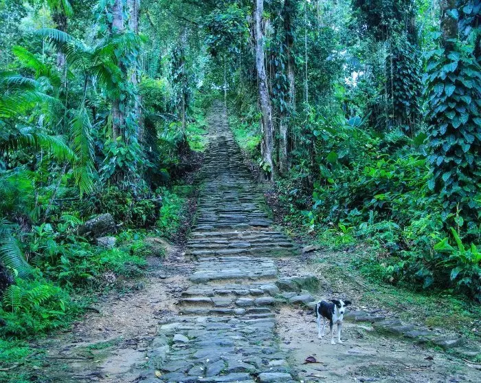 Het laatste stuk van het pad naar de Verloren Stad bestaat uit een steile trap met 1200 treden in verschillende vormen en grootten. Het beklimmen van de trap is zwaar, maar wanneer u de top bereikt, kunt u uzelf een klopje op de schouder geven en van het adembenemende uitzicht genieten. Het gebied van 35 hectare herbergt een complex van gebouwen, wegen en trappen die door meer dan 150 terrassen, pleinen en stenen wegen met elkaar verbonden zijn. De gebouwen en wegen liggen verspreid over de berghellingen. Vanaf de top heeft u een fantastisch uitzicht over de dichte jungle en het indrukwekkende ruïnecomplex.