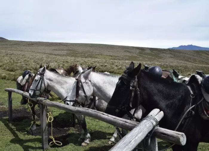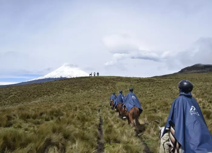 Het paard doet het zware werk op de berghelling van de uitgedoofde vulkaan Rumiñahui, zodat jij rustig de prachtige natuur kunt bewonderen. Je wordt omringd door hoge bergen en vulkanen, en bij helder weer is er een onbeschrijfelijk mooi uitzicht op de besneeuwde vulkaan Cotopaxi.