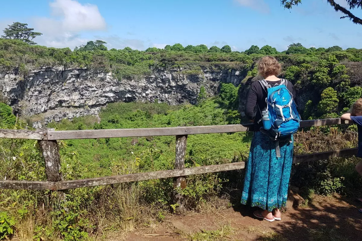 De eerste stop is Los Gemelos, ook bekend als de tweelingkraters, twee enorme zinkgaten vlak naast elkaar. Rond de gaten zie je een overvloed aan vogels in het weelderige scalesia-bos.