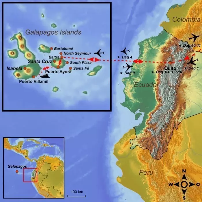 Bij aankomst op Baltra Airport moet je een ingangsvergoeding voor Galapagos (contant) betalen. Je gids wacht je buiten de luchthaven op en je neemt samen de bus naar het Itabacakanaal, waar een boot je naar het hoofdeiland Santa Cruz brengt.