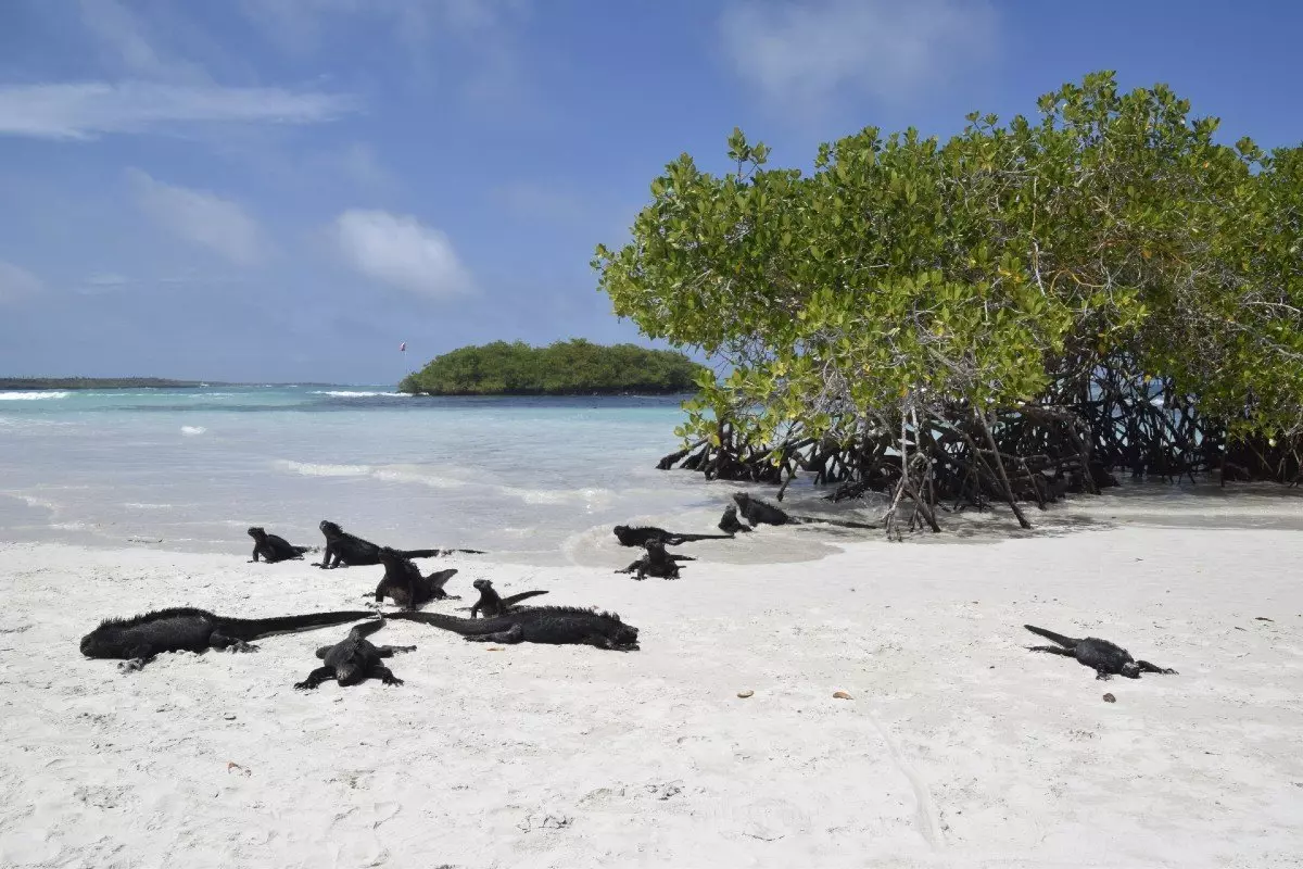 We raden je ook ten zeerste aan om je rugzak in te pakken, je wandelschoenen aan te trekken en de dag door te brengen op het prachtige strand, Tortuga Bay. Een geasfalteerd pad leidt naar het strand, dat begint in het zuidwestelijke deel van Puerto Ayora – een wandeling van ongeveer 45 minuten heen en terug. In Tortuga Bay kun je zonnebaden, surfen of gewoon alle zeeleguanen en pelikanen observeren die er leven. De stroming kan erg sterk zijn, dus als je wilt zwemmen in rustig water, moet je doorlopen naar het einde van het strand (ongeveer 2,5 km), waar het pittoreske Playa Mansa-strand ligt in een kleine lagune omgeven door mangrovebos.