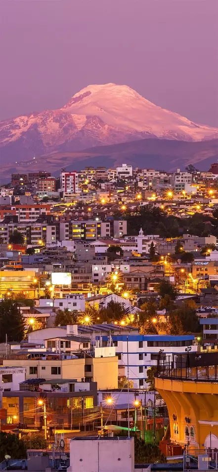Quito ligt op een prachtige locatie in de Andes op een hoogte van 2.850 meter, en op een heldere dag kunt u de besneeuwde Cotopaxi vulkaan bewonderen.