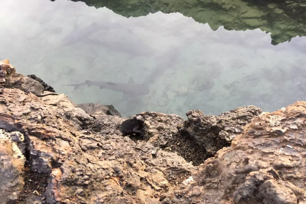 Als je nog niet naar de pier in Puerto Ayora bent geweest, wandel daar dan naartoe en bekijk alle rifhaaien, roggen en zeeleeuwen in het ondiepe water en de kleurrijke krabben en zeeleguanen die op de rotsen leven.