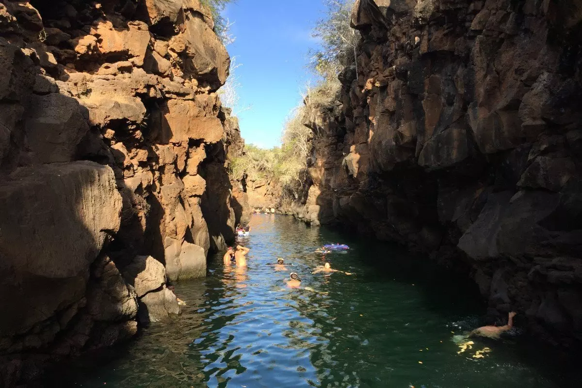 Een andere excursiemogelijkheid vanuit Puerto Ayora is Las Grietas, een diep, langgerekt “watergat” in een rotsbreuk waar je kunt zwemmen en snorkelen. Vanaf Puerto Ayora neem je een taxiboot (ongeveer 1 USD) naar Angermeyer Point, dat op ongeveer 700 meter van Las Grietas ligt over een hobbelig paadje, dus vergeet niet om goede wandelschoenen te dragen. Dit is een populaire bestemming bij de plaatselijke bevolking in het weekend.