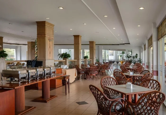 Het zwembad van het hotel ligt centraal in de tuin, omgeven door groen, en er is volop ruimte om tussen de excursies door te ontspannen. In de tuin vindt u ook een basketbalveld en een buitenspeelplaats voor kinderen, dus is er volop gelegenheid voor plezier en activiteit als u met het gezin reist.