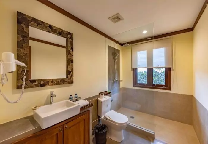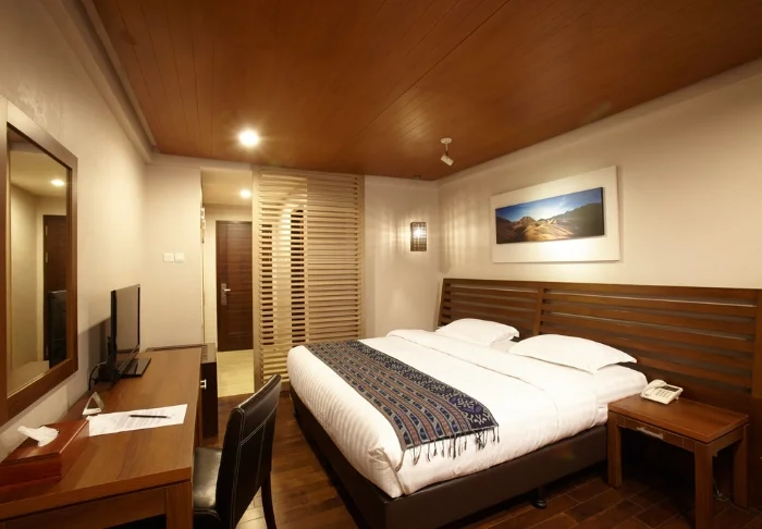 Standaard verblijft u in een lichte, ruime Superior-kamer met houten meubilair en grote ramen met uitzicht op de bergen of de lommerrijke hoteltuin. U kunt rekenen op een comfortabel verblijf met een bureau, TV, wifi, kledingkast, klamboe en koffie- en theefaciliteiten. De badkamer is voorzien van een douche en gratis toiletartikelen.