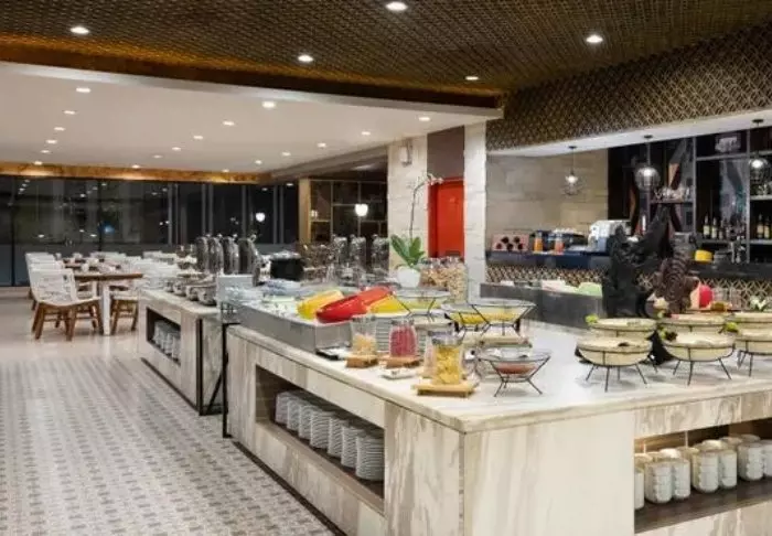 Wanneer de honger toeslaat, biedt het restaurant van het hotel een selectie van lokale en internationale gerechten, met een prachtig uitzicht op het strand.