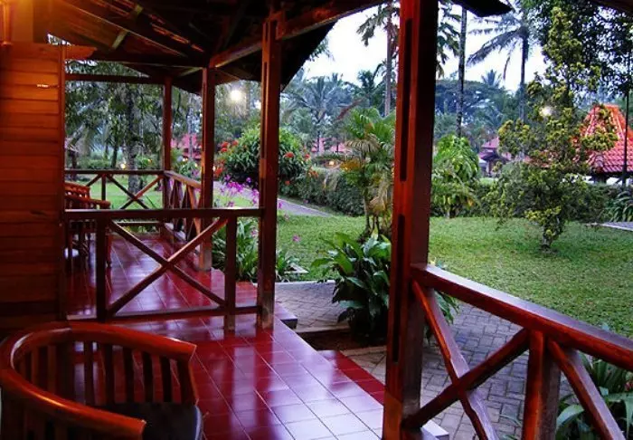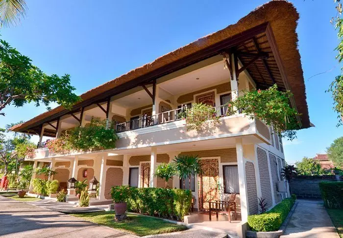 Het is een gezellig hotel met een fijne, ontspannen sfeer. Het is gebouwd in echte Indonesische stijl met traditionele lumbung-huisjes en bungalows.