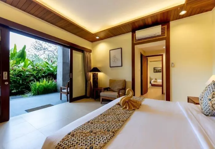 De kamers zijn 50 m² groot en mooi ingericht in moderne Balinese stijl, die perfect opgaat in de schilderachtige omgeving. Alle kamers zijn voorzien van wifi, airco, plafondventilator, thee- en koffiefaciliteiten, minibar, gratis flesjes mineraalwater, kluisje, tv en telefoon. De badkamer is voorzien van badjassen en badslippers, föhn en toiletartikelen. Na een hopelijk goede nachtrust kunt u lekker buiten zitten op uw eigen terras, met uitzicht op de groene omgeving, en genieten van een kopje dampende thee of koffie met de geluiden van de jungle op de achtergrond.