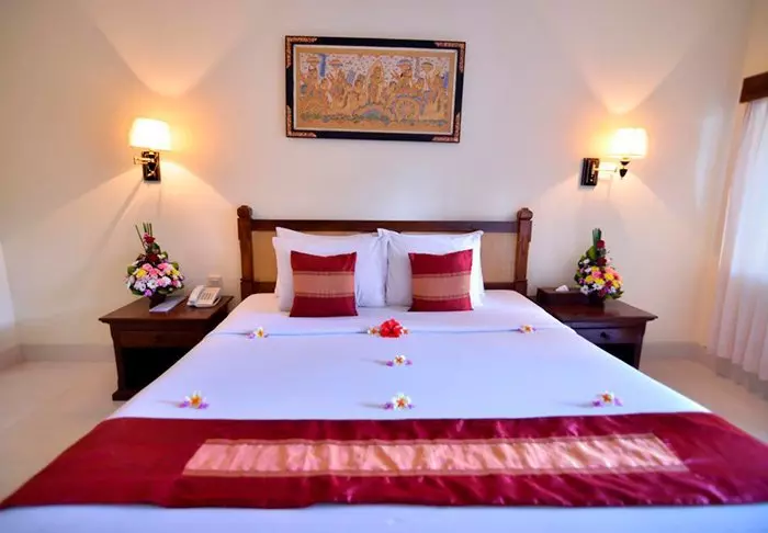 De kamers van het hotel zijn eenvoudig ingericht in Balinese stijl en voorzien van gratis wifi, airco, minibar, tv, telefoon, thee- en koffiefaciliteiten en een badkamer met gratis toiletartikelen. Op uw eigen balkon of terras kunt u ontspannen en genieten van de rust en stilte van de tuin.