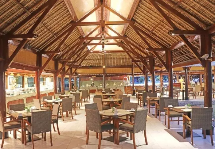 In het restaurant staat een keukenteam van lokale inwoners uit het nabijgelegen dorp klaar om Balinese en Indonesische gerechten te serveren, die zijn gemaakt van lokale ingrediënten en met verse vis gevangen door de lokale vissers. Hier staat ook een fijn zeebriesje en u heeft een prachtig uitzicht op het strand.