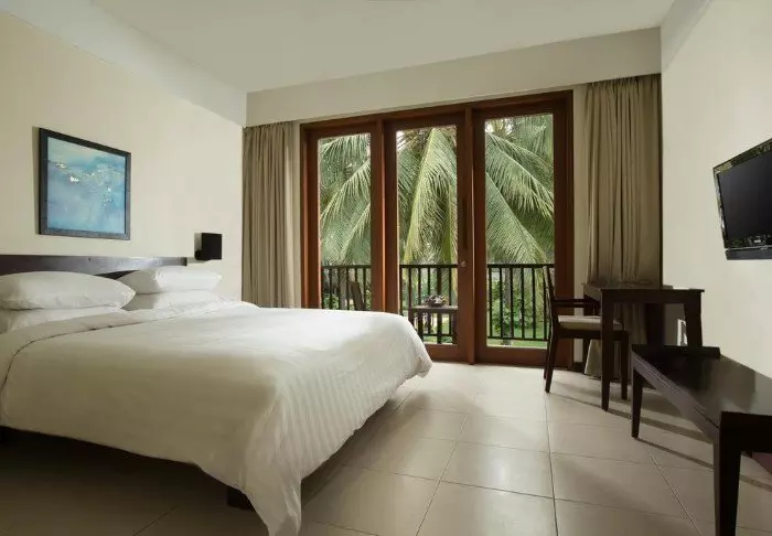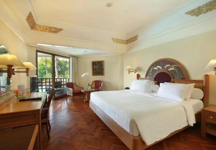 Maya Sanur heet 103 lichte en mooi ingerichte kamers van minimaal 57 m2. Alle kamers hebben wifi, airconditioning, minibar, thee- en koffiefaciliteiten, kluisje, tv en telefoon. Er is ook een bureau en een zithoek. De badkamer is voorzien van een douche en een bad, toiletartikelen, badjas en badslippers. Van uw eigen balkon heeft u uitzicht op de weelderige tuin en hier kunt u zitten met een goed boek of genieten van een kopje Balinese koffie.