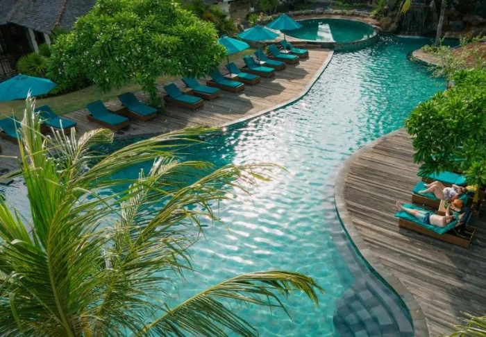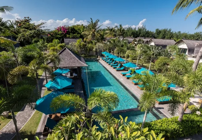Het is een gezellig hotel met een fijne, ontspannen sfeer. Het is gebouwd in echte Indonesische stijl met traditionele lumbung-huisjes en bungalows.