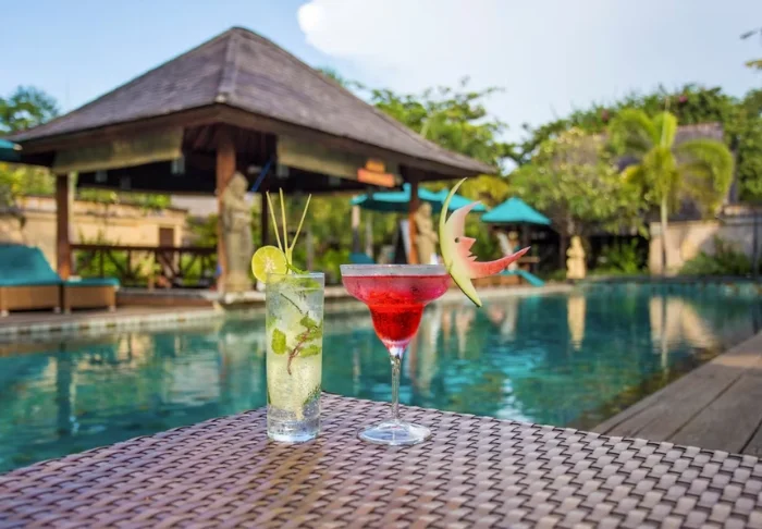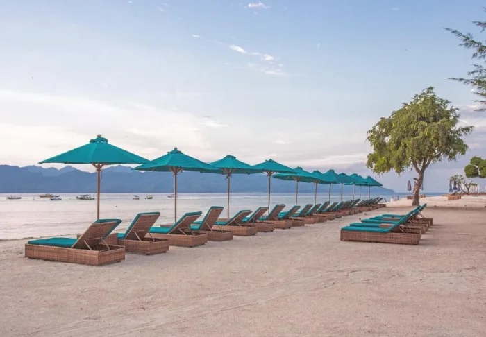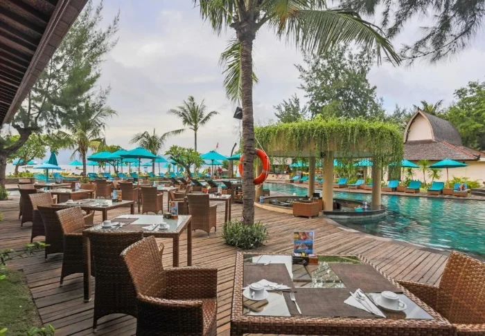 In de tuin vindt u de twee mooie zwembaden van het hotel. Het ene zwembad heeft een bijbehorend kinderbad en kijkt uit op het strand en het naburige eiland Lombok met de berg Rinjani, terwijl het andere voor volwassenen is, meer teruggetrokken gelegen midden in de tropische tuin met palmbomen en plumeria. Beide zwembaden hebben parasols, ligstoelen en een ‘swim-up bar’ ,waar u verkoelende drankjes, vers geperste sappen en vers kokoswater kunt bestellen, geserveerd in een kokosnoot – een absolute must als u op Gili bent!