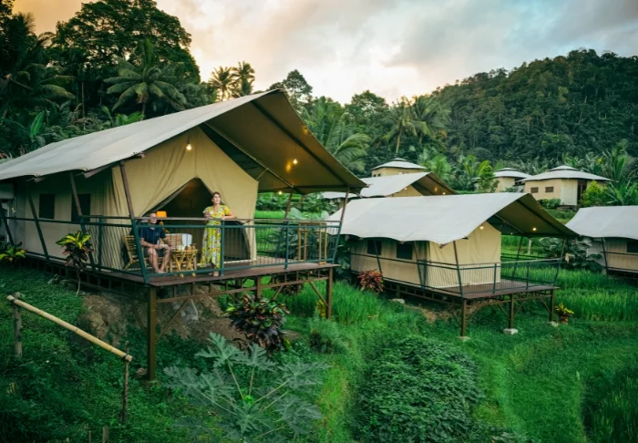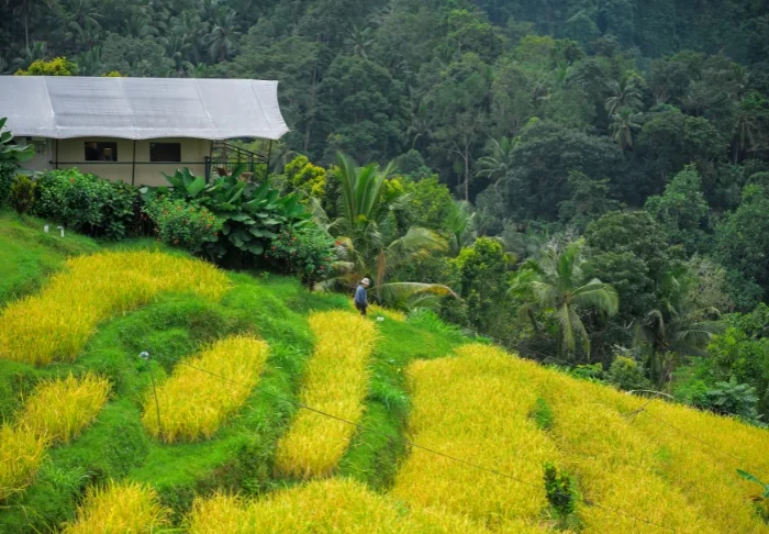 Kaura Bali ligt hoog in de heuvels boven Manggis. Het is een plek waar dorpsleven, natuur en rust samenkomen. U verblijft hier te midden van groene rijstterrassen en jungle, met uitzicht op de Indische Oceaan; de sfeer is onthaast, aandachtig en nauw verbonden met de lokale gemeenschap. Kaura is ontwikkeld door onze lokale partner in samenwerking met het dorp, en een groot deel van de beleving komt voort uit de ontmoetingen met de mensen die hier wonen. Alles voelt warm, nuchter en respectvol voor de natuur en lokale tradities.