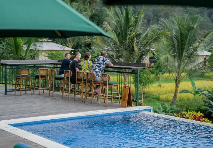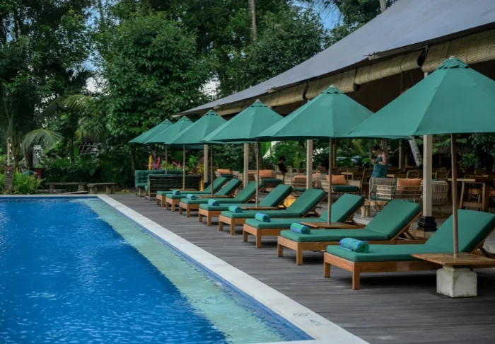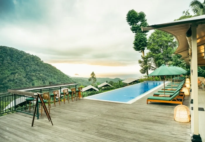 Kaura heeft bovendien een schitterend infinityzwembad met uitzicht over de vallei, waar het licht de hele dag door prachtig verandert. Op de heuveltop is er yoga in de kleine shala, een spa met Balinese behandelingen en knusse hoekjes met hangmatten en vuurplaatsen.