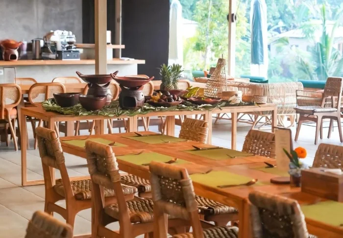 Restaurant Pratiwi werkt volgens het principe van boer tot bord en haalt de ingrediënten rechtstreeks van de eigen velden en naburige boerderijen. Het menu is seizoensgebonden en legt de nadruk op Balinese smaken, huisgemaakte kruidenpasta’s en verse kruiden.