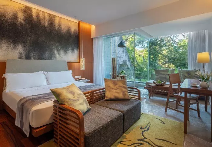 Maya Sanur heet 103 lichte en mooi ingerichte kamers van minimaal 57 m2. Alle kamers hebben wifi, airconditioning, minibar, thee- en koffiefaciliteiten, kluisje, tv en telefoon. Er is ook een bureau en een zithoek. De badkamer is voorzien van een douche en een bad, toiletartikelen, badjas en badslippers. Van uw eigen balkon heeft u uitzicht op de weelderige tuin en hier kunt u zitten met een goed boek of genieten van een kopje Balinese koffie.