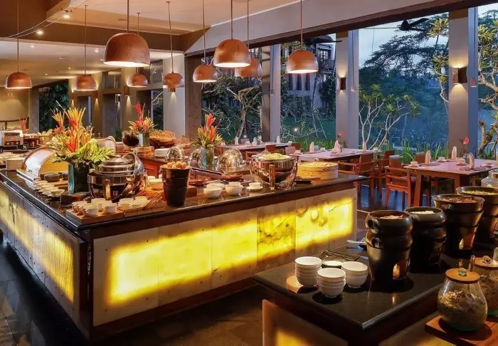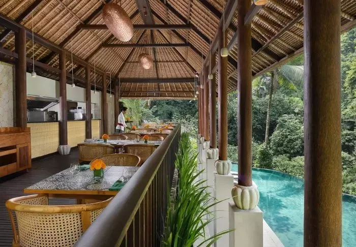 Wanneer de honger toeslaat na een drukke dag, kunt u uw smaakpapillen verwennen met lokale of internationale gerechten in een van de drie restaurants van het hotel. U kunt ook een ijskoud drankje nemen in de hotelbar, Tree Bar, die uitzicht biedt op de weelderige natuur van Ubud.