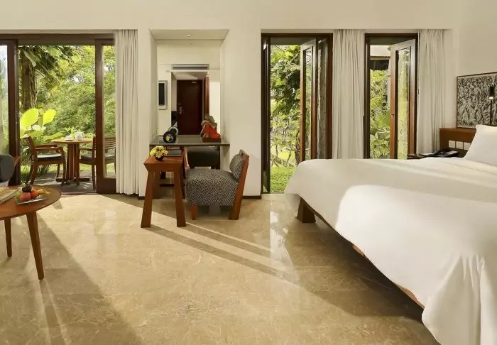 Het resort heeft een eigen gratis pendelbus naar het centrum van Ubud dat ongeveer 5-10 minuten rijden is.
